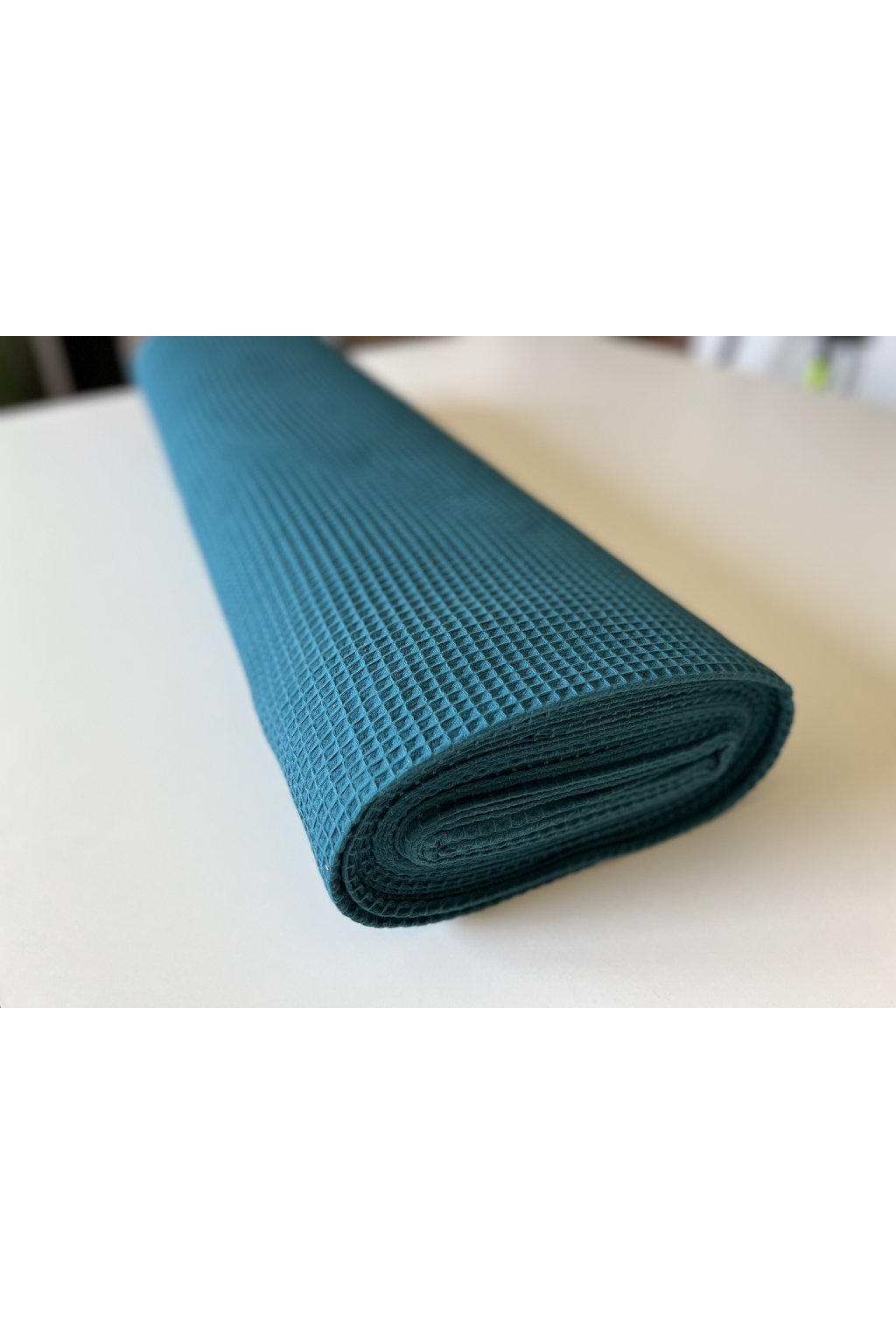 Bavlna s vaflovou vazbou je velmi příjemná na dotek. Je charakteristická dobrou savostí. Využijete ji například na dětské deky, zavinovačky, hnízdečka, župany, ale i na utěrky či ručníky.
