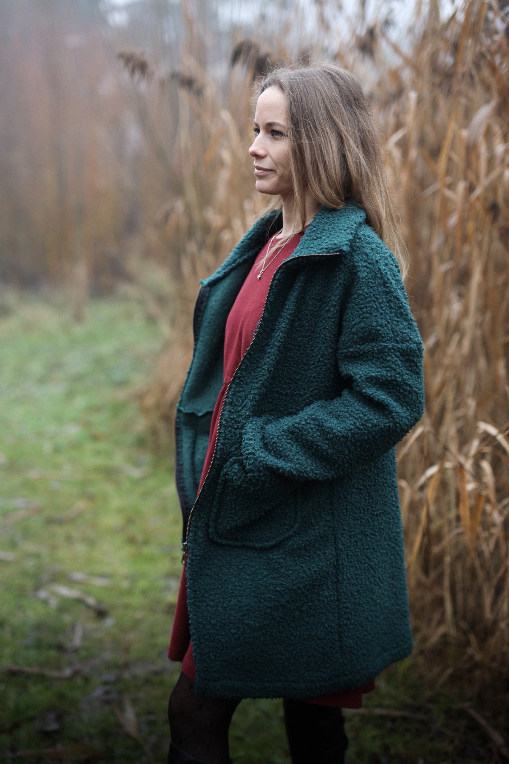 Kabátek Paris je šitý z vlněné kabátovky krul, není vypodšívkovaný a tak se hodí na podzim/jaro případně mírnou zimu.